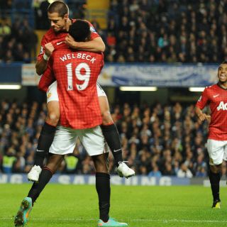 LONDRES, INGLATERRA (01/NOV/2012).- El delantero mexicano Javier "Chicharito" Hernández se perfila para ser el jugador más destacado de Manchester United en el mes de octubre, tras las cuatro anotaciones que consiguió y a los triunfos que comandó.