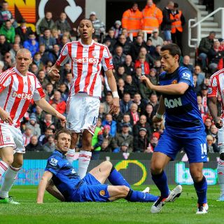LONDRES, INGLATERRA (14/ABR/2013).- El Manchester United, líder destacado de la Premier League, se impuso por 2-0 en su visita al Stoke City, este domingo en la jornada 33 del campeonato, con lo que se recupera tras la derrota 2-1 sufrida el lunes en su estadio ante el vecino y segundo clasificado, el Manchester City.