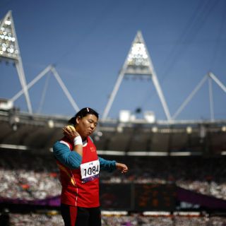 LONDRES, INGLATERRA (06/SEP/2012).- Gana competencia final de lazamiento de disco la atleta paralímpica china Na Mi, con una distancia de 35.35 metros, con lo que establece nuevo récord mundial, durante la octava jornada de competición de los Juegos Paralímpicos de Londres 2012.