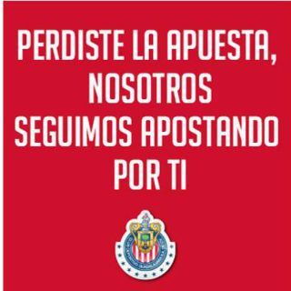 Con el título “Más fuertes que nunca, la historia continúa”, el Rebaño puso una imagen en su cuenta oficial de Twitter, @Chivas, con la leyenda “Perdiste la apuesta, nosotros seguimos apostando por ti”, justo después de perder el Clásico Nacional.