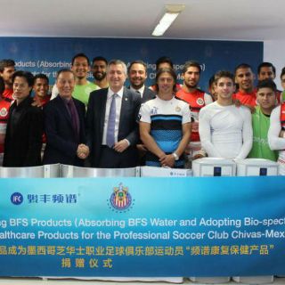 GUADALAJARA, JALISCO (24/FEB/2017).- Con la presencia de Jorge Vergara, todo el cuerpo técnico y plantilla de jugadores de Chivas, se consumó el acuerdo para trabajar de la mano con JFC Junfeng BFS Technology, líder de artículos para el cuidado, mantenimiento y rehabilitación de la salud, que estará ayudando a los deportistas rojiblancos en el proceso de mejorar su rendimiento deportivo, tal y como se hace con los atletas olímpicos de China, donde opera la empresa, en Guangzhou.