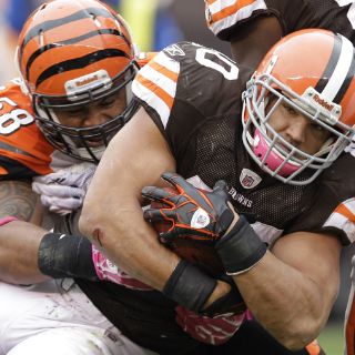 CLEVELAND, OHIO (03/OCT/2010).- El corredor Peyton Hillis ganó el domingo 102 yardas y tuvo una anotación, Phil Dawson conectó tres goles de campo y los Cafés de Cleveland finalmente sostuvieron una ventaja en el cuarto período sobreviviendo a un muy buen desempeño de Terrell Owens para obtener su primera victoria, de 23-20 sobre los Bengalíes de Cincinnati.