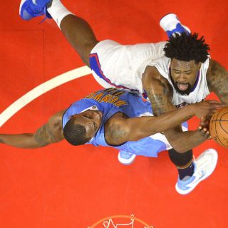 LOS ÁNGELES, ESTADOS UNIDOS (28/MAR/2016).- DeAndre Jordan encabezó una ofensiva colectiva para la victoria de Clippers de Los Ángeles por 105-90 sobre los Nuggets de Denver, y con ello confirmar su clasificación a los Playoffs de la