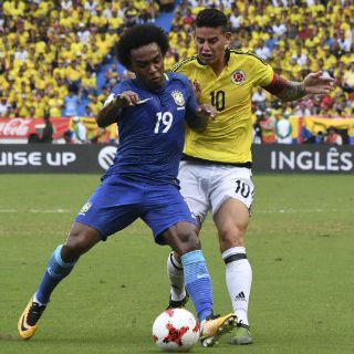 En el minuto 45 Brasil se adelantó en el marcador con un soberbio zapatazo de Willian desde la frontal del área ante el que nada pudo hacer el arquero David Ospina.
