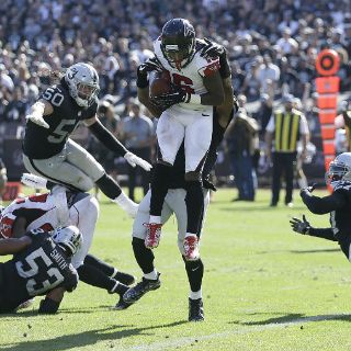OAKLAND, CALIFORNIA (18/SEP/2016).- Justin Hardy capturó un pase desviado de ocho yardas en la zona de anotación para romper el empate a la mitad del último periodo, y los Halcones de Atlanta derrotaron el domingo 35-28 a los Raiders de Oakland.