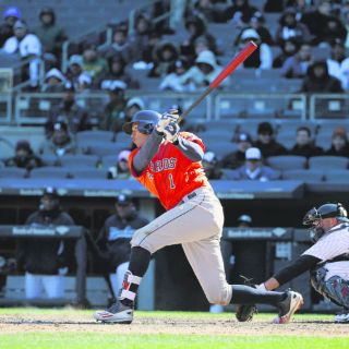 El Novato del Año de la Liga Americana bateó un jonrón y remolcó dos carreras para que los Astros de Houston derrotaran ayer 5-3 a los Yankees de Nueva York, en un juego inaugural disputado con gélidas temperaturas.