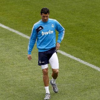 MADRID, ESPAÑA (26/ABR/2013).- Cristiano Ronaldo, extremo internacional portugués del Real Madrid, no jugará el clásico madrileño ante el Atlético de Madrid en el estadio Vicente Calderón, y como confirmó el segundo técnico blanco, Aitor Karanka, sufre una lesión muscular que le dejará fuera de la convocatoria.