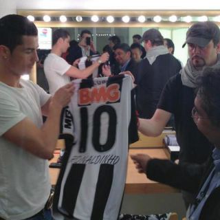 "Para mí es uno de los mejores jugadores de la actualidad, que está marcando época y rompiendo récords en Europa. Aquí tienen a CR7 recogiendo una camiseta del Atlético Mineiro que envié para él. Espero que le haya gustado el regalo", escribió Ronaldinho.