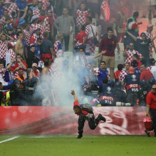 En una Eurocopa marcada hasta ahora por los problemas con los ''hooligans'' y la violencia, las bengalas lanzadas al campo exponen a Croacia a sanciones importantes.