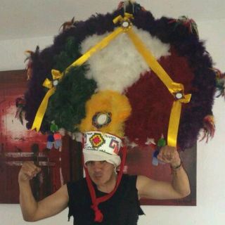 Twitter una fotografía donde posa con un penacho como muestra de agradecimiento luego de haber recibido un reconocimiento por parte de la directiva de los Alebrijes de Oaxaca, equipo de la