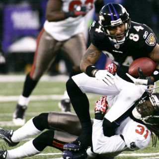 BALTIMORE, MARYLAND (28/NOV/2010).- Joe Flacco lanzó dos pases de touchdown y los Cuervos de Baltimore superaron el domingo a los Bucaneros de Tampa Bay por 17-10 para empatar la marca de su franquicia con ocho victorias seguidas como locales.