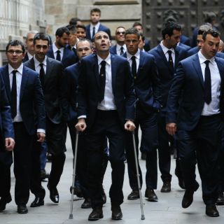 BARCELONA, ESPAÑA (28/ABR/2014).- Familiares, amigos, representantes del mundo político y deportivo así como la junta directiva y la plantilla al completo del