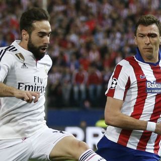 MADRID, ESPAÑA (15/ABR/2015).- El lateral del Real Madrid Dani Carvajal, autor de un golpe no sancionado sobre el croata Mario Mandzukic el martes en Champions (0-0), desmintió haber mordido en esa jugada al atacante del Atlético, quien este miércoles confirmó la versión del español.