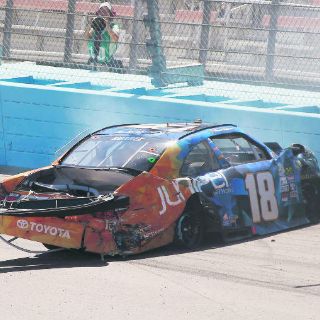 Suárez, campeón reinante de esta categoría de Nascar, abandonó la carrera apenas en el giro número 12 después de recibir un contacto por detrás que le provocó un pinchazo en un neumático trasero, que después se reventaría y que provocara que el regio fuera contra el muro de contención, lo que dejó con daños irreparables el coche del piloto del equipo Joe Gibbs Racing.