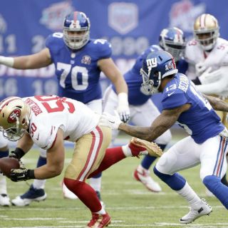 San Francisco, interceptó un pase de Eli Manning en la yarda 2, con 4:43 minutos por disputar, para que los 49ers vencieran el domingo 16-10 a unos erráticos