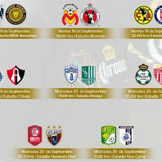 Completan el programa el Monterrey-Leones Negros, que se jugará en la Sultana dl Norte el martes a las 19:00 horas, el Morelia-Xolos que se jugará en Morelia el martes a las 19:00, el Pachuca-Zacatepec que se llevará a cabo en el estadio Hidalgo el miércoles a las 19:06, el Santos-Necaxa en casa de los Guerreros el miércoles a las 20:00, el Toluca-Atlante que tendrá lugar en el Nemesio Diez el miércoles a las 20:00 y el León Querétaro, que se jugará en el Nou Camp el miércoles a las 21:06.
