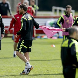 Del Bosque se cansó de la actitud de Cesc y le instó a quitarse el peto, con el que ensayaban los titulares, y colocarse en el equipo de sudaderas negras. Xabi Alonso recibió el peto que se quitó y algún compañero sujetó a Fábregas por la espalda para que evitase una imagen delante de todos los medios de comunicación en un entrenamiento abierto.