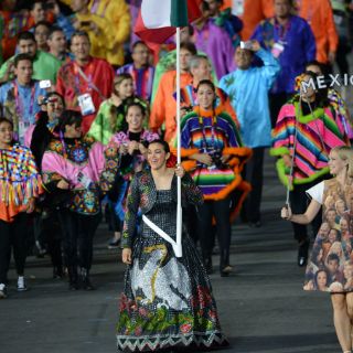 María del Rosario Espinoza portó el Lábaro Patrio, seguida de los atletas mexicanos que participarán en Londres
