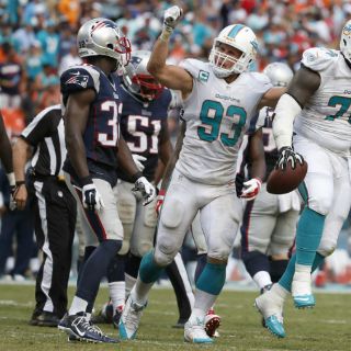 Tannehill lanzó pases de touchdown a Lamar Miller y Mike Wallace en el primer partido en que Miami usó un ataque sin reunión. La defensa de los Delfines tuvo cuatro sacks, todas en la segunda parte, y recuperó dos balones sueltos.