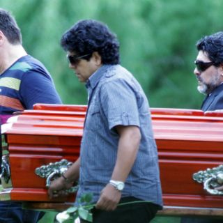 Vestido con un traje negro, camisa blanca y anteojos negros que no le ayudaron a ocultar las lágrimas, Maradona compartió su luto junto a su padre, sus hermanos y sus hijas, quienes pidieron respeto para el considerado mejor futbolista de la historia argentina.