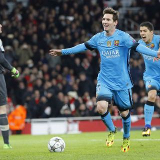 LONDRES, INGLATERRA (23/FEB/2016).- Dos goles en la segunda mitad de Lionel Messi pudieron este miércoles en Londres con un sólido Arsenal (0-2) y colocaron al Barcelona con un pie y medio en cuartos de final de la Liga de Campeones.