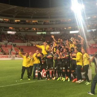 Dorados de Sinaloa por su triunfo de la víspera ante Rayos de Necaxa, que le dio la oportunidad de regresar a la Primera División del futbol mexicano.