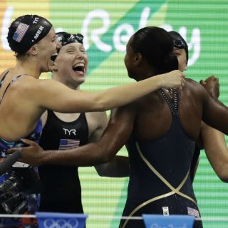 RÍO DE JANEIRO, BRASIL (13/AGO/2016).- El equipo de relevos de Estados Unidos se impuso este sábado cómodamente en los 4x100 combinados femenino, sin necesitar de su estrella, Katie Ledecky.