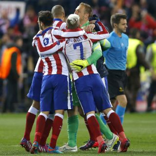 Atlético de Madrid en la tanda de penaltis (3-2), en el suspense del último lanzamiento, el que Stefan Kiessling mandó fuera, entre el éxtasis de la afición rojiblanca que llenó el Vicente Calderón.
