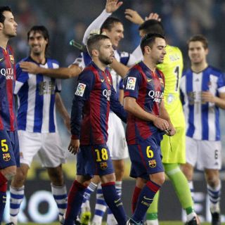 Barcelona no aprovechó el traspiés del Real Madrid y, fiel a la tradición de las últimas cuatro temporadas, volvió a caer en Anoeta (1-0) ante una Real Sociedad que realizó un extraordinario encuentro defensivo y se beneficio del gol en propia portería de Jordi Alba en el minuto dos.