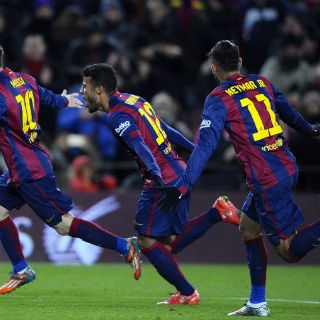 3 - Barcelona: Bravo; Alves, Piqué, Mascherano, Alba; Busquets (Mathieu, min.71), Rafinha (Rakitic, min.88), Iniesta; Messi, Suárez (Pedro, min.78) y Neymar.