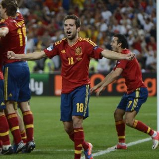 MADRID, ESPAÑA (28/JUN/2012).- El lateral izquierdo internacional Jordi Alba, que está disputando la Eurocopa 2012 con España, fichará las próximas cinco temporadas por el FC Barcelona, que firmó el traspaso con el Valencia por 14 millones de euros, anunció este jueves el club catalán.