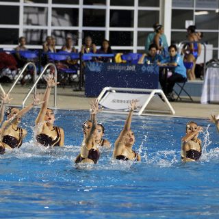 GUADALAJARA, JALISCO (11/ABR/2012).- Ni el temblor de 6.4 grados que se sintió en la Zona Metropolitana de Guadalajara desconcentró a las sirenas y la actividad del Campeonato Nacional de Nado Sincronizado continúo como si nada hubiera pasado en el Complejo Acuático Scotiabank.