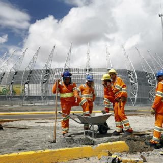 La visión desde afuera del imponente estadio de Fortaleza se dificulta con el polvo que se levanta de las obras de "retoque", como señaló el operario Marcos Vinicius, para quien es un motivo de orgullo integrar el equipo de obreros que trabajó en la obra.