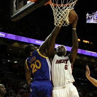 MIAMI, ESTADOS UNIDOS (02/DIC/2011).- LeBron James anotó 25 puntos y tuvo 10 asistencias, Dwyane Wade también hizo 25 unidades y el Heat de Miami remontó una desventaja de 20 puntos para derrotar el sábado a los Warriors de Golden State por 114-107 y anotarse su 17ma victoria en 18 partidos.