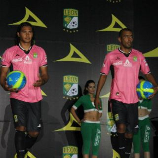 CIUDAD DE MÉXICO (23/JUL/2012).- Los Esmeraldas de León sorprendieron en la presentación de su uniforme para el torneo Apertura 2012 de la Liga MX, pues, además de los tradicionales en verde, el de local; y blanco, de visitante, anunciaron un tercero, en rosa.