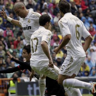 MADRID, ESPAÑA (29/ABR/2012).- El Real Madrid se impuso fácilmente este domingo al Sevilla (3-0) en la 36ª jornada de la liga española, con un gol de Cristiano Ronaldo (19) y un doblete de Karim Benzema (48, 52), y podría ser campeón si el Barcelona pierde más tarde su duelo en el campo del Rayo Vallecano.