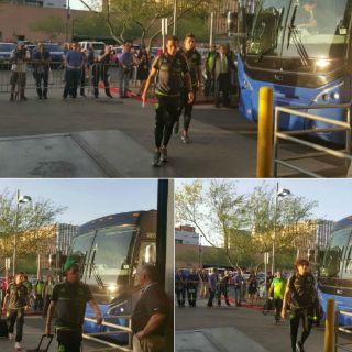 Con el técnico colombiano Juan Carlos Osorio a la cabeza, el goleador Javier 'Chicharito' Hernández y el capitán Andrés Guardado como blanco de los flashes, el Tricolor fue recibido en el aeropuerto internacional Phoenix-Sky Harbor por el gobernador del estado Arizona, Douglas Ducey.