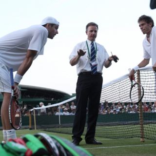 LONDRES, INGLATERRA (23/JUN/2010).- El estadounidense John Isner y el francés Nicolas Mahut han marcado hoy un nuevo récord en la historia del tenis al protagonizar el partido más largo de todos los tiempos, dentro y fuera de Wimbledon, con diez horas de duración y que aún no ha acabado, pues ha sido aplazado por falta de luz para mañana jueves.