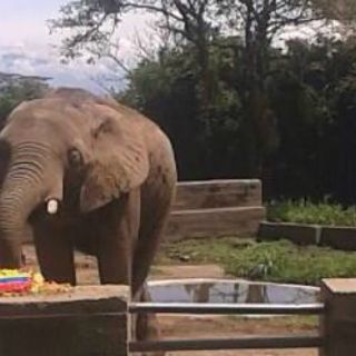 El paquidermo, que acertó el triunfo de Colombia sobre Uruguay, se acercó este jueves a los dos pasteles que portaban las banderas de la tricolor y la de Brasil, y con el moco tomó la colombiana, desatando la euforia de los asistentes.
