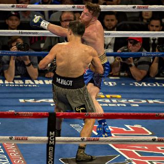 Poco a poco "Canelo" fue ganando confianza y le cerraba los espacios a Golovkin que hasta el cuarto asalto no podía llegar franco al cuerpo del pelirrojo, que en cambio sí pudo conectarlo con un gancho al hígado.