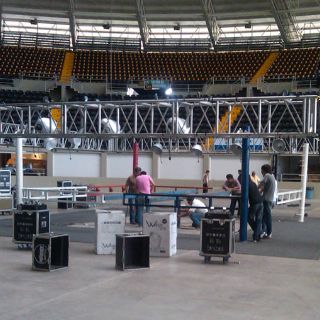 GUADALAJARA, JALISCO (08/JUL/2010).- En un primer día de actividad para la instalación y montaje de todo lo que será el escenario de la esperada velada boxística del próximo sábado denominada "Un Campeón Hecho en Jalisco", la Arena VFG empieza a tomar forma en sus entrañas para albergar sendos pleitos de título mundial.