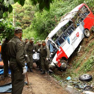 Según informes de bomberos, el bus urbano privado cayó ''por causas que aún se investigaban'' a una quebrada de más de 150 metros de profundidad, en una zona de cuestas en las cercanías de Tomé, 470 kilómetros al sur de Santiago, a poco de iniciar el viaje de regreso a Rancagua.