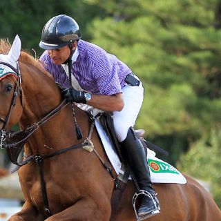 GUADALAJARA, JALISCO (22/AGO/2011).- El jinete capitalino Enrique González Delgado, montando “Stakarus”, de la Escuela Hípica Las Águilas, obtuvo la prueba estelar con obstáculos a 1.40 metros, al concluir la segunda fecha del Campeonato Estatal de Salto de Obstáculos, que la Asociación Ecuestre de Jalisco celebró en el Guadalajara Jockey Club.