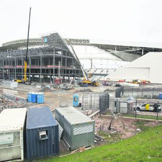 Entre las obras todavía sin concluir se encuentra la instalación de las gradas temporales, con capacidad para 20.000 personas, que se usarán sólo durante el Mundial y que corren a cargo de la empresa Fast Engenharia.