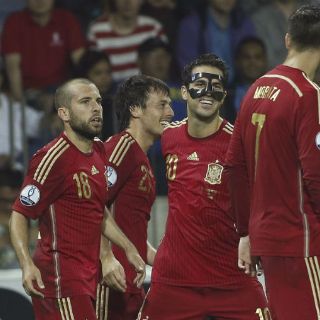 España, que presentó un 11 con Iker Casillas de portero, Cesc y Cazorla en el centro del campo y Morata como delantero centro, dominó desde el inicio del encuentro, teniendo la primera oportunidad en el minuto uno.