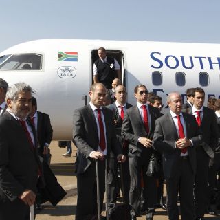 El conjunto de Vicente del Bosque fue el último en aterrizar en suelo sudafricano porque no debutará sino hasta el día 16 en Durban ante Suiza, y lo hizo pocas horas antes del encuentro inaugural entre Sudáfrica y México.