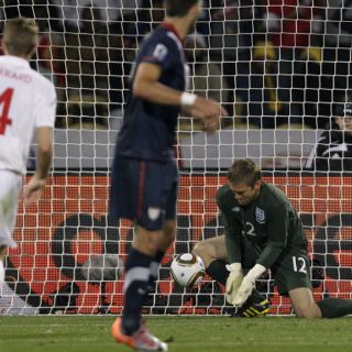 RUSTENBURGO, SUDÁFRICA (12/JUNIO/2010).- Inglaterra sólo pudo empatar (1-1) con Estados Unidos, el sábado en Rustenburgo, en su debut del Grupo C del Mundial 2010 de futbol, debido a un fallo garrafal de su portero Robert Green, sembrando dudas sobre su potencial y su candidatura al título.