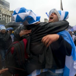 BUENOS AIRES, ARGENTINA (06/JUL/2014).- La lluvia no fue suficiente para aplacar las ganas de celebración de los argentinos, eufóricos después de que la selección albiceleste acabase ayer con 24 años de “maldición de cuartos”, al clasificarse para las semifinales del Mundial de Brasil tras