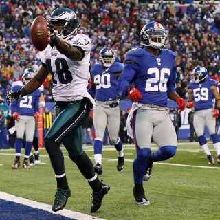EAST RUTHERFORD, ESTADOS UNIDOS (20/DIC/2010).- El mariscal de campo de las Águilas de Filadelfia, Michael Vick, lanzó para tres anotaciones y DeSean Jackson regresó 65 yardas un balón de despeje hasta la zona de anotación en la última jugada del partido para que Filadelfia derrotara 31-38 a los Gigantes de Nueva York.