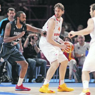 GUADALAJARA, JALISCO (16/JUL/2012).- El equipo de basquetbol de España, uno de los candidatos a ganar la medalla de oro, en los Juegos Olímpicos de Londres 2012, superó con éxito su primer examen complicado al vencer por 75 puntos a 70, a su similar de Francia.